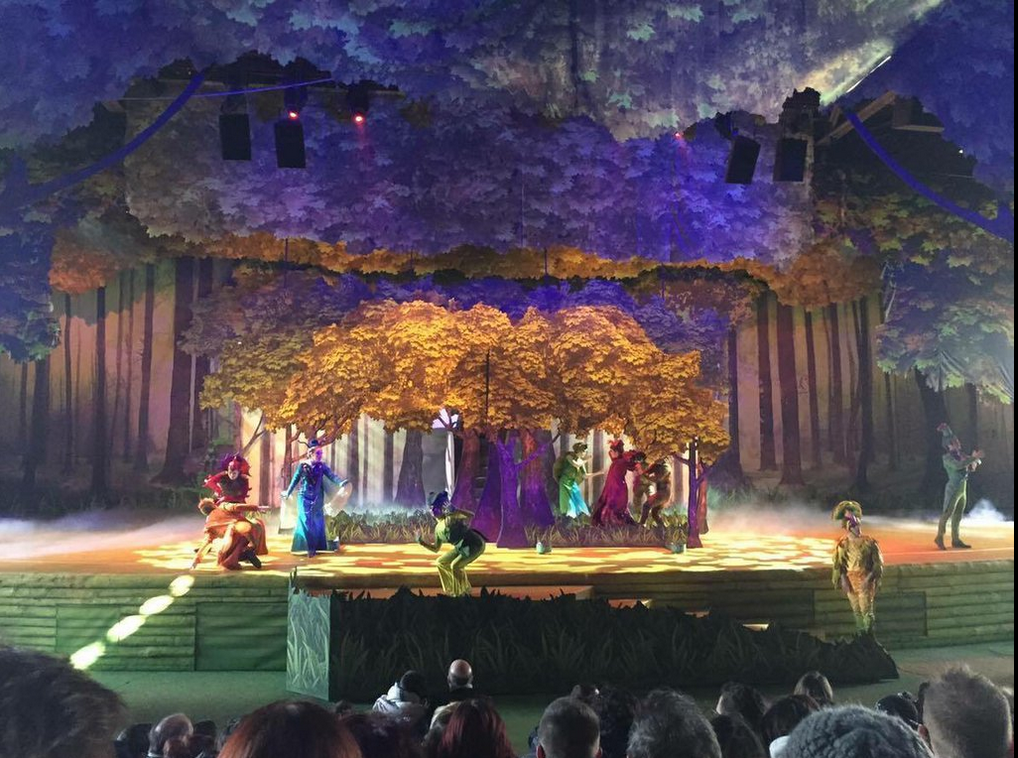 Le spectacle commence, magnifique entrée, danseurs et acrobates s’enchainent après être restés plusieurs minutes sur la scène à vivre normalement dans leur forêt enchantée. Danseurs, acrobates et la maitresse de cérémonie s’accaparent la scène et là, le show commence !